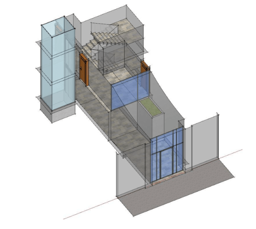 Bien que la solution la plus conseillée – et, en fin de compte, la plus pratique – soit de descendre l’ascenseur au niveau zéro, il existe d’autres options prévues par le code technique de la construction, comme l’installation de plateforme élévatrices verticales et la construction de rampes.